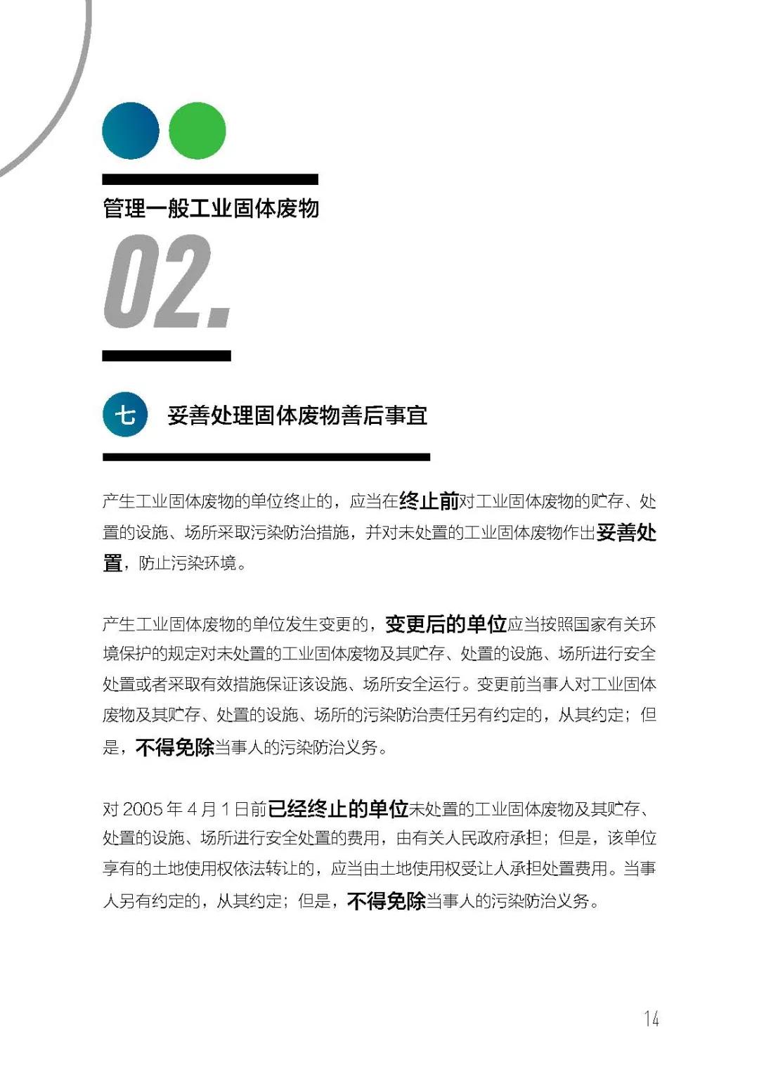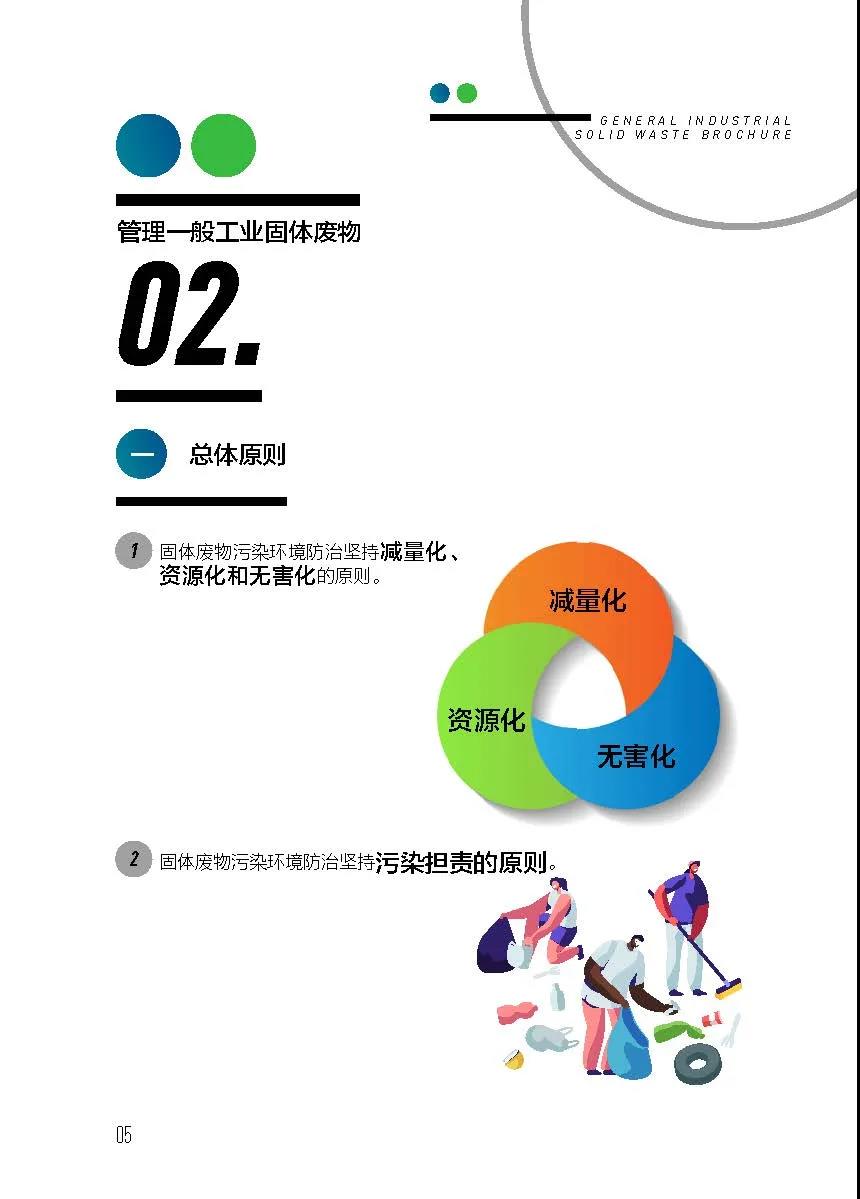 《中華人民共和國固體廢物污染環(huán)境防治法》(以下簡稱《固廢法》)經2020年4月29日第十三屆全國人民代表大會常務委員會第十七次會議第二次修訂,自 2020年9月1日起施行。新修訂的《固廢法》由原來的六章九十一條增加至九章一百二十六條,確立了“減量化、資源化、無害化”“污染擔責”等重大法律原則,增加了建筑垃圾、農業(yè)固體垃圾和保障措施等專章,完善了對工業(yè)固體廢物、農業(yè)固體廢物、生活垃圾、建筑垃圾、危險廢物等的污染防治制度。時值新修訂《固廢法》正式實施一周年,今天為《一般工業(yè)固體廢物管理宣傳手冊(法律法規(guī)基礎篇)》,重點介紹鑒別標準、管理制度及法律責任。