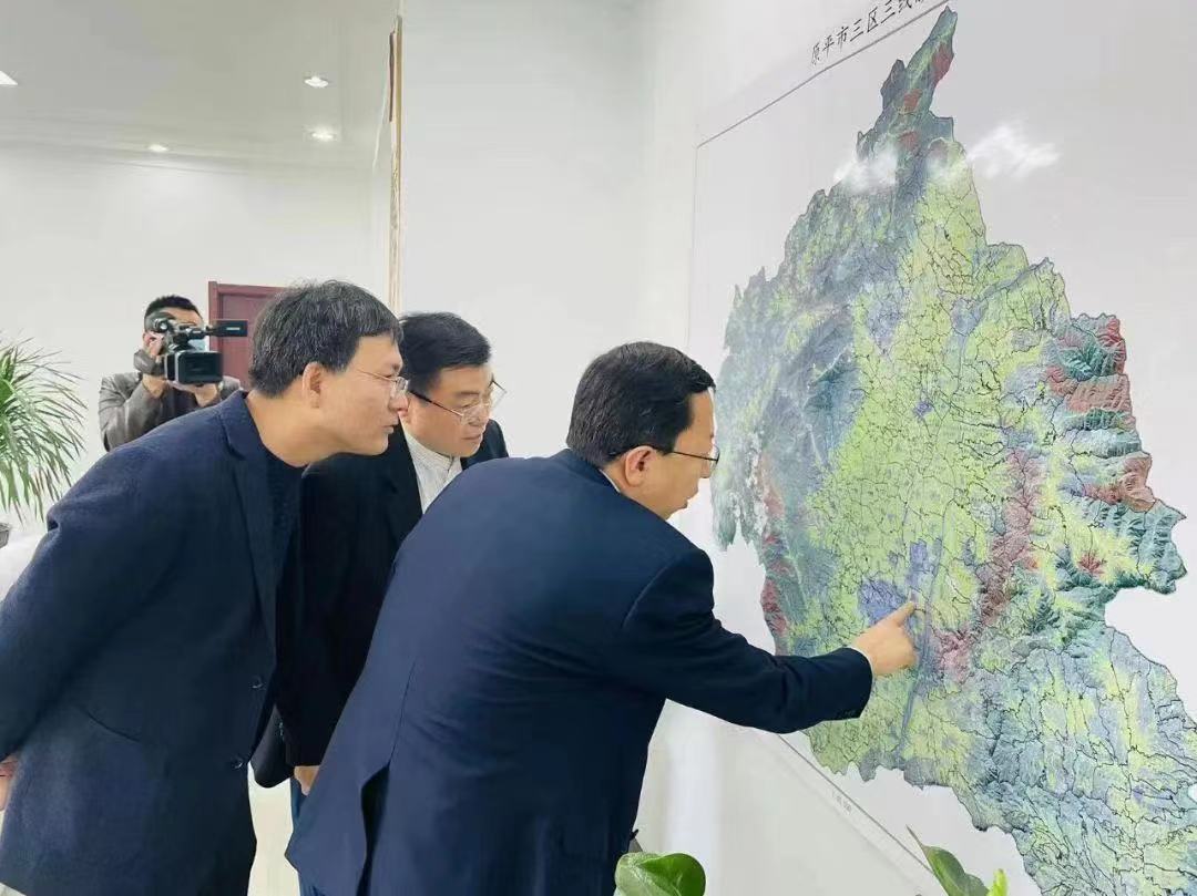 市委副書(shū)記、市長(zhǎng)常永峰結(jié)合原平市規(guī)劃圖進(jìn)行項(xiàng)目戰(zhàn)略規(guī)劃布局