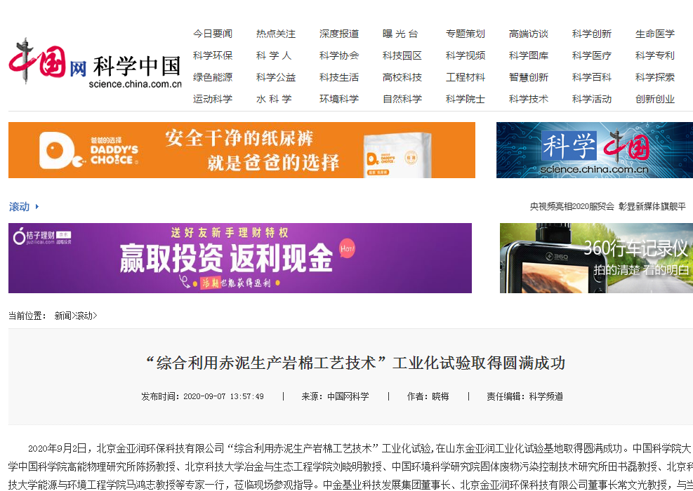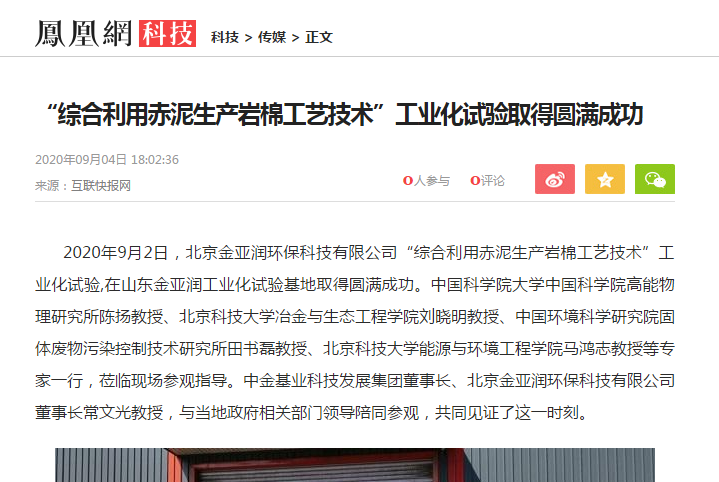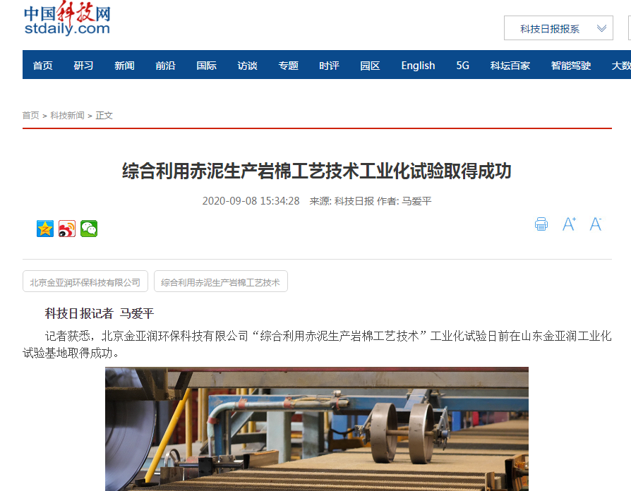 科技日?qǐng)?bào)網(wǎng)等聯(lián)合刊載 “綜合利用赤泥生產(chǎn)巖棉工藝技術(shù)”工業(yè)化試驗(yàn)取得圓滿成功